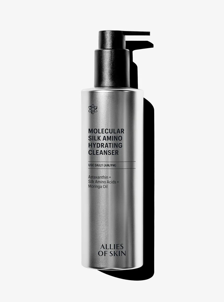 The Allies of Skin Molecular Silk Amino Hydrating Cleanser is the ultimate multitasker because it treats your skin more like a serum than a traditional cleanser. It’s formulated with silk amino acids and organic oils that work to dissolve grime, SPF, and makeup while simultaneously pumping your skin with antioxidants like Vitamin C and Vitamin E. I love it because it respects your skin barrier so deeply—you’re left with a complexion that feels incredibly bouncy and hydrated rather than that dry, “squeaky clean” tightness we are all trying to avoid.
